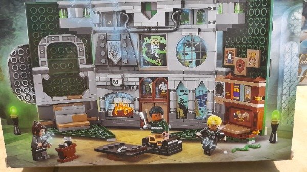 Libro que al desplegarse muestra un salon, tiene un gancho atras para poder colgarlo como si fuera un cuadro.